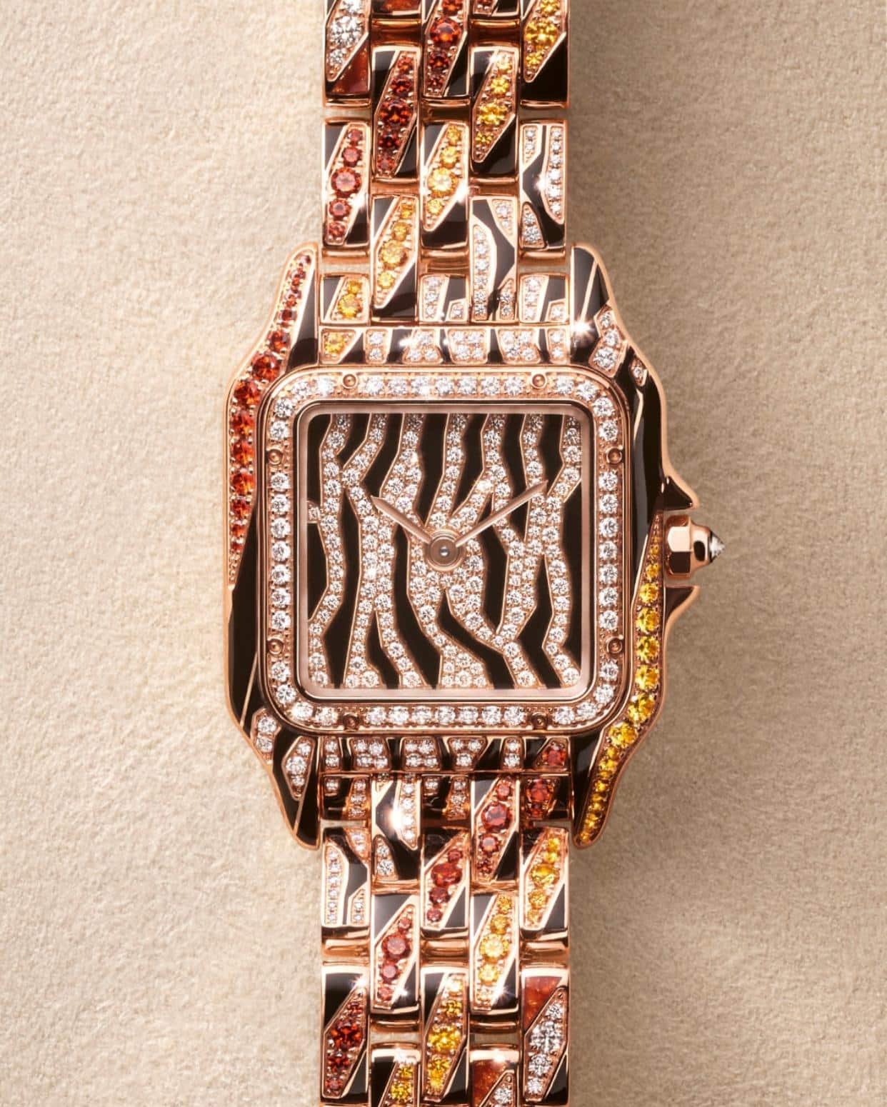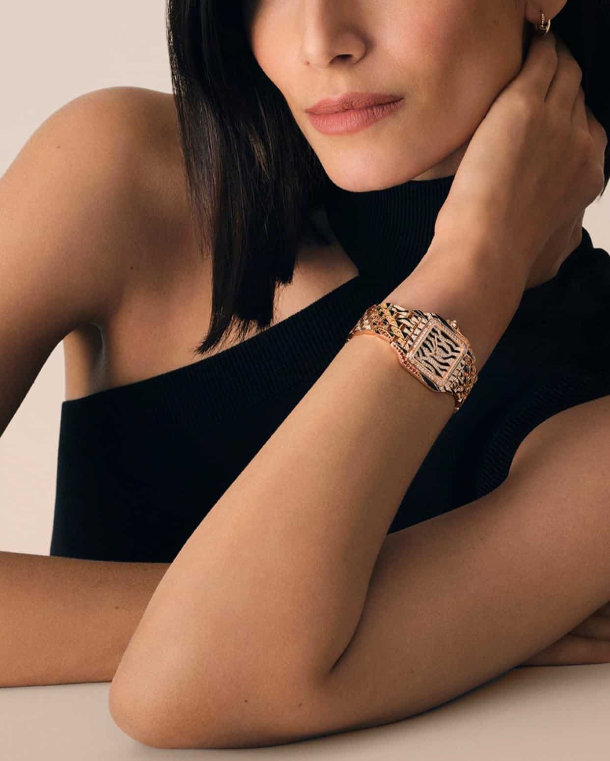 Panthère combine l’expertise bijoutière de Cartier avec une silhouette horlogère simple et légère.