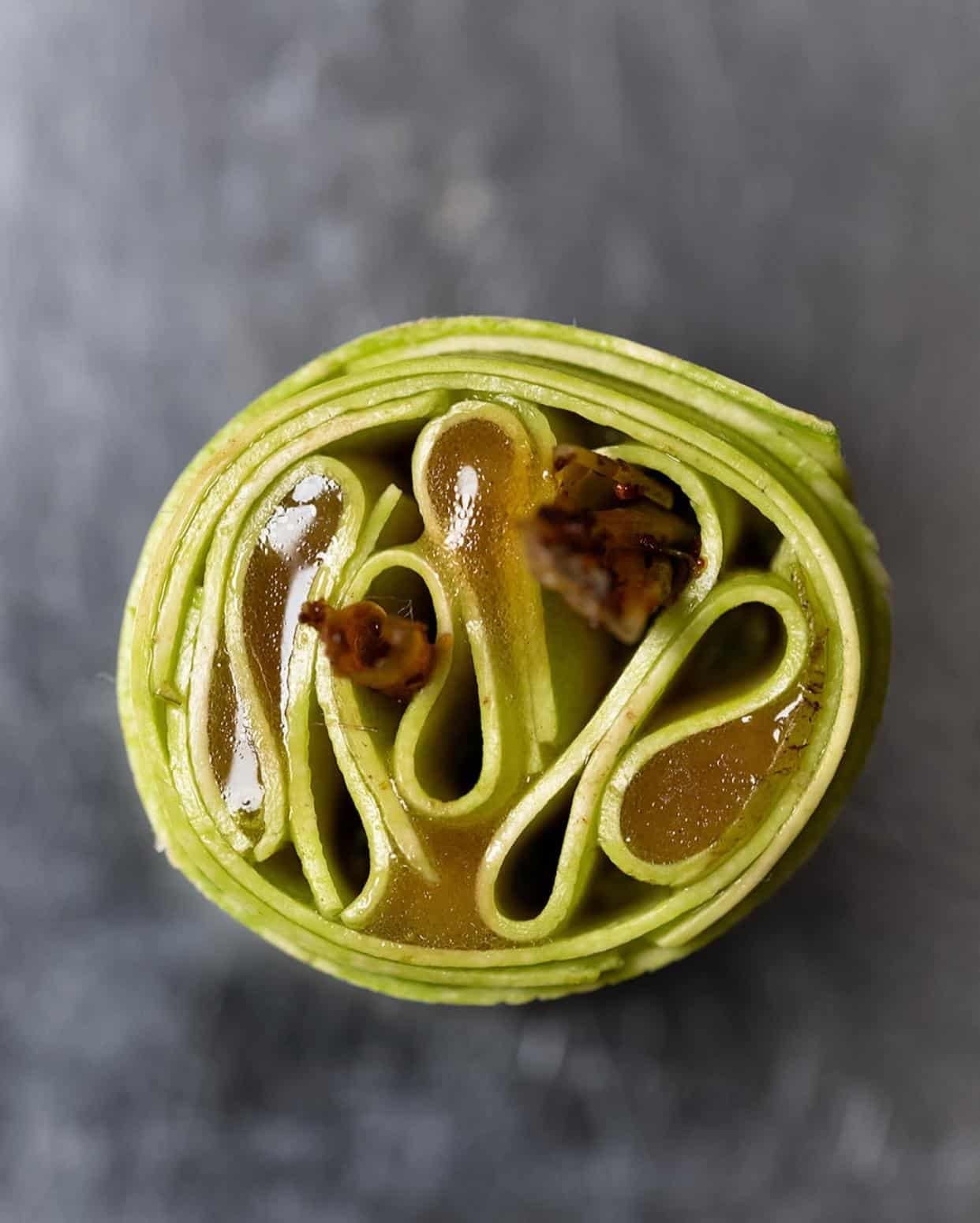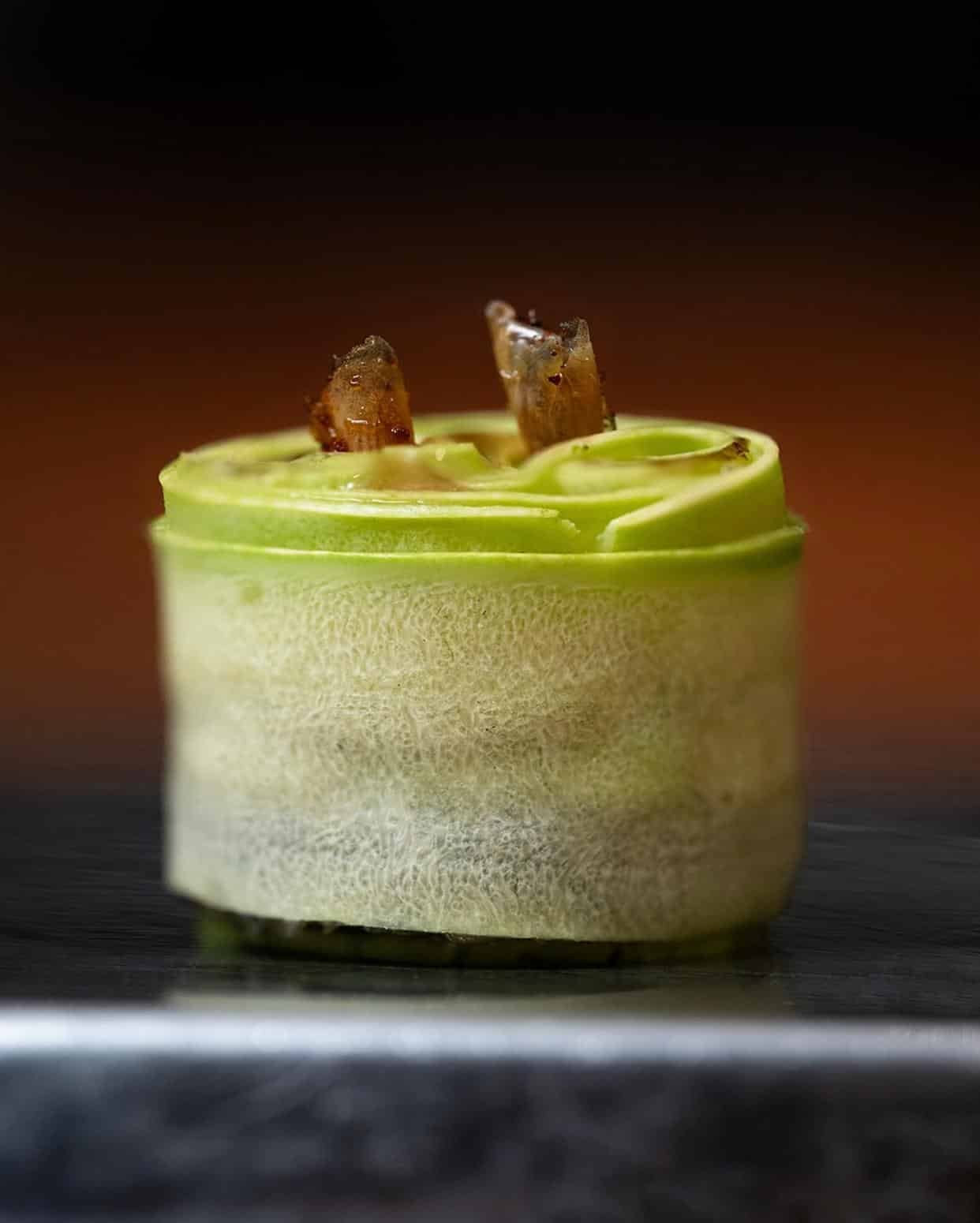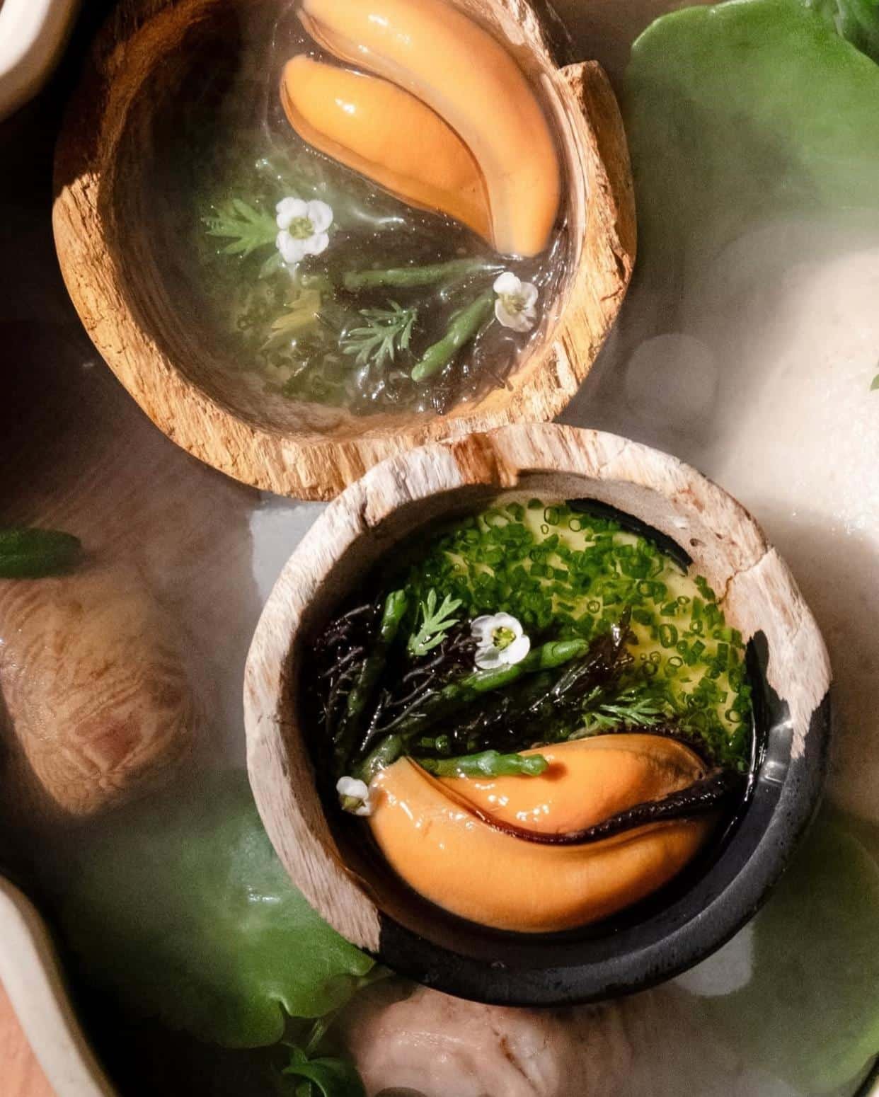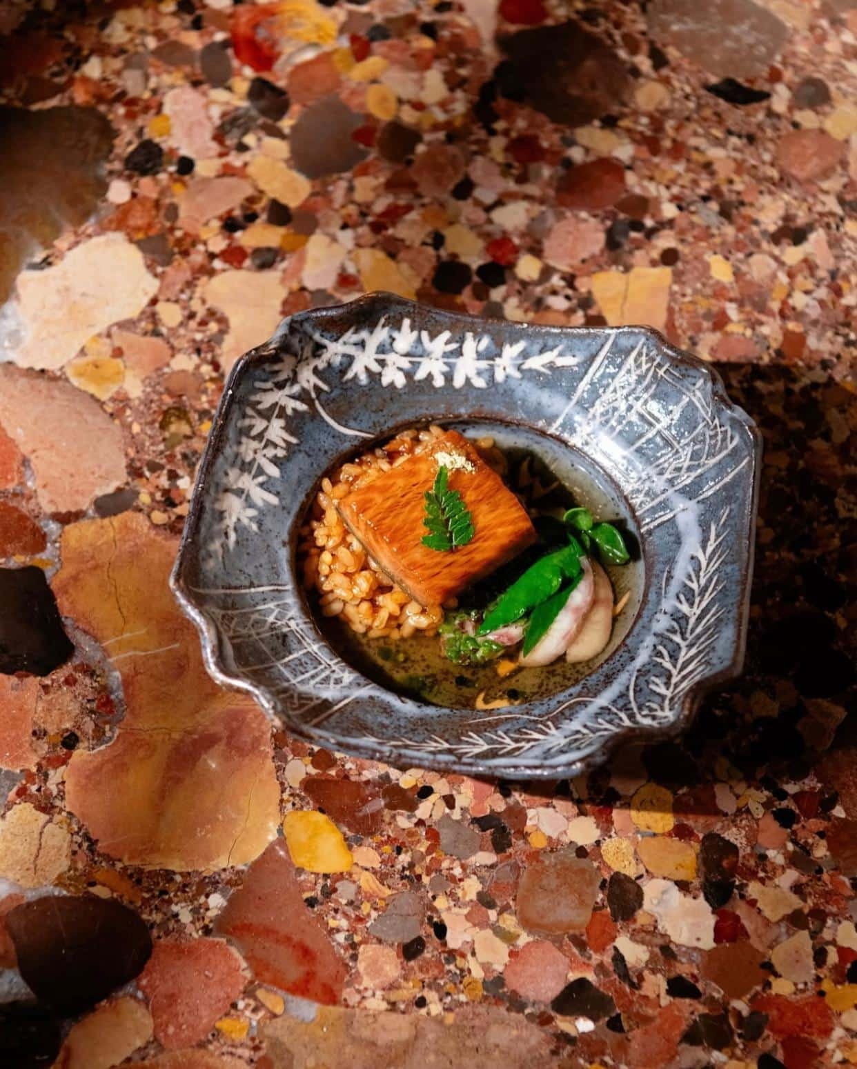 bouillons clairs, légumes de saison, textures travaillées, umami végétal maîtrisé.